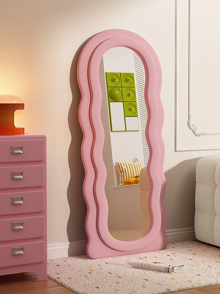 Creamy Full-Length Dressing Mirror - Cute French Style for Girls, Cozy INS Aesthetic, Ideal for Home Use, Perfect Standing Dressing Mirror for Your Bedroom
