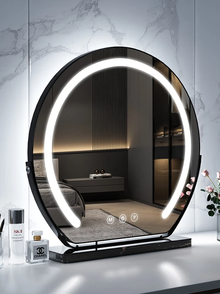 Luxury LED Makeup Mirror with Smart Lighting - Elegant Tabletop Vanity Mirror for Home Use, Perfect for Beauty Routines and Grooming on Your Dressing Table