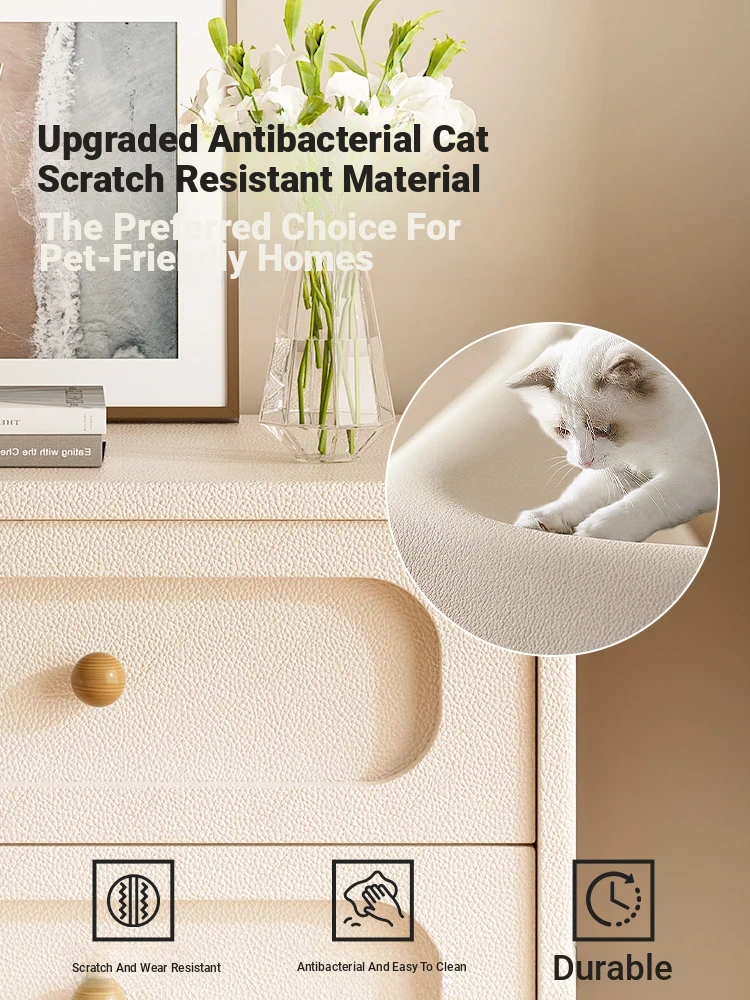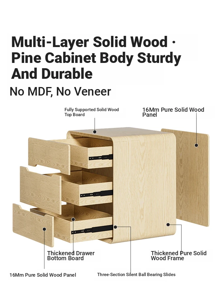 2025 New Minimalist Cream-Style Solid Wood Nightstand - No Installation Required, Modern Bedroom Storage Cabinet for Home Use