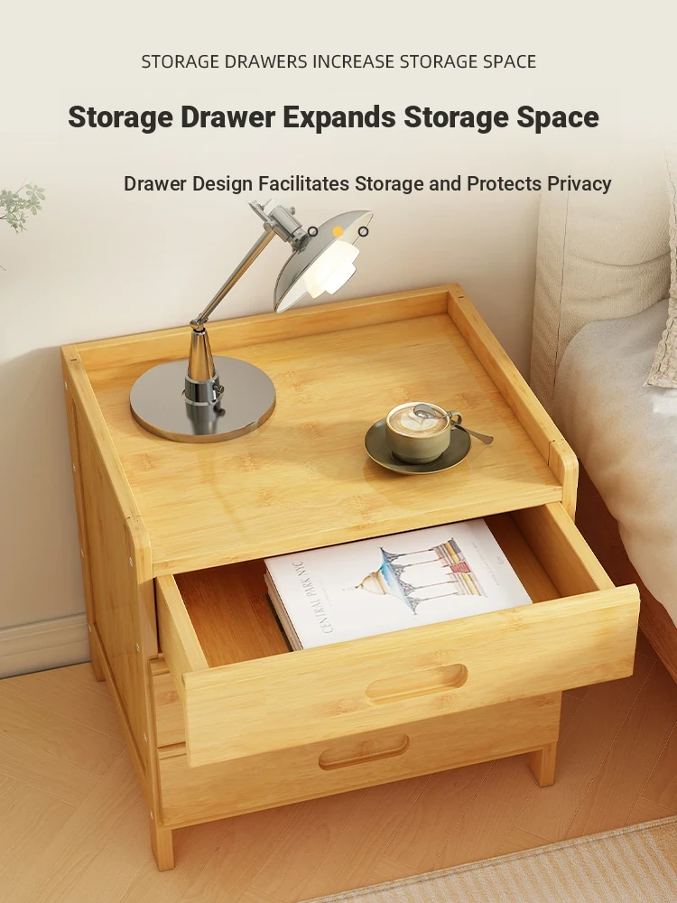 Modern Minimalist Nightstand - Compact Bamboo Storage Cabinet for Bedroom, Simple Bedside Narrow Shelf, Solid Wood Organizer for Easy Access
