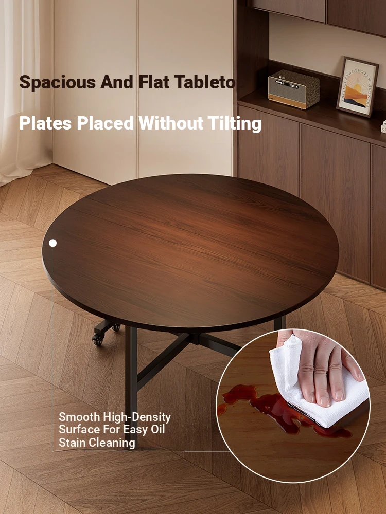 Foldable Round Dining Table - Vintage Style for Home, Perfect for 10-15 People, 2025 New Model, Space-Saving Design, Ideal for Family Gatherings and Entertaining Guests.