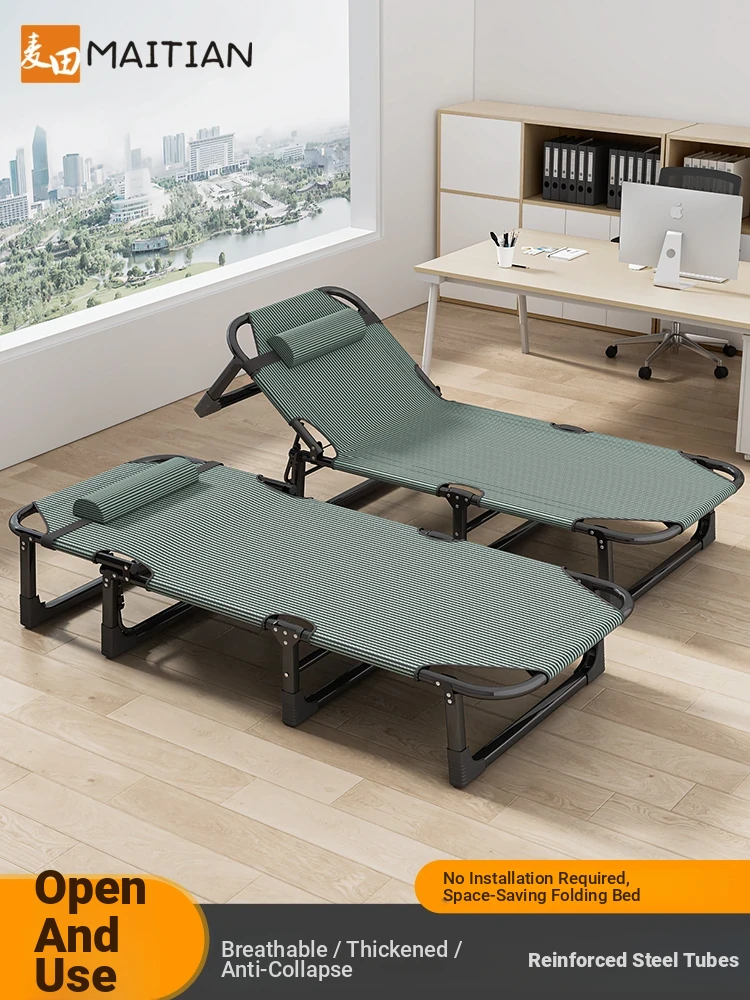 Portable Folding Bed for Office Nap – Single Person Relaxation Chair, Ideal for Home Use, Easy to Carry, Durable Hardboard Military Bed for Adults
