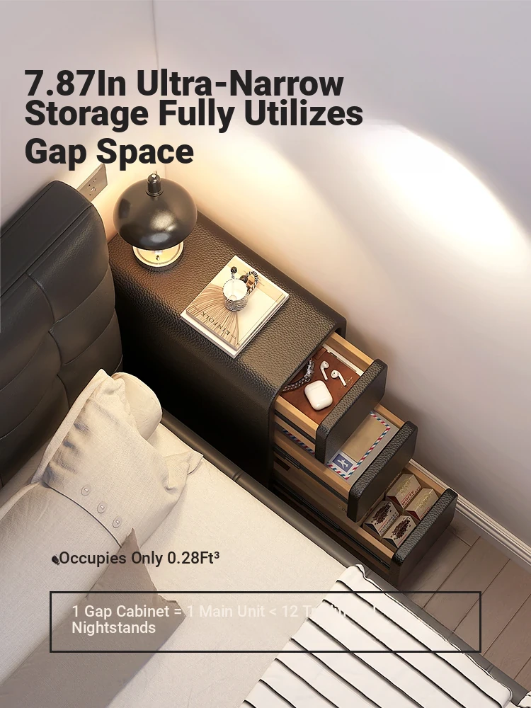 Mini Solid Wood Nightstand - Ultra-Slim 20cm Narrow Bedside Cabinet for Small Spaces, Perfect for Storage and Organization in Tight Gaps