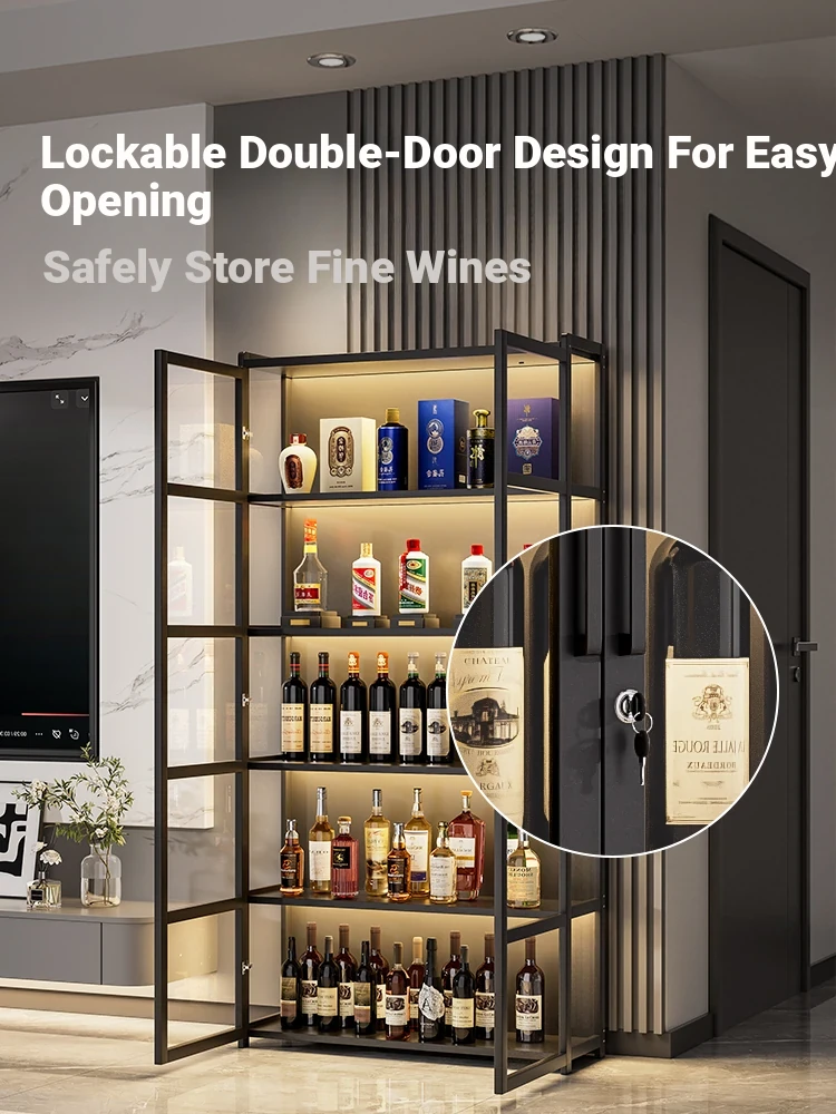 2024 New Wall-Mounted Wine Cabinet for Living Room - Stylish Display Shelf for Red and White Wine, Lockable with LED Lighting, Compact and Easy to Organize