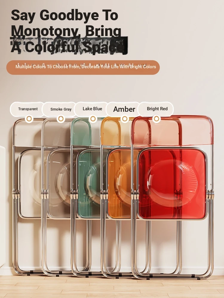 Transparent Acrylic Crystal Folding Chair - Trendy Makeup and Photo Chair for Home Use, INS Style with Backrest, Perfect for Dining Table and More!