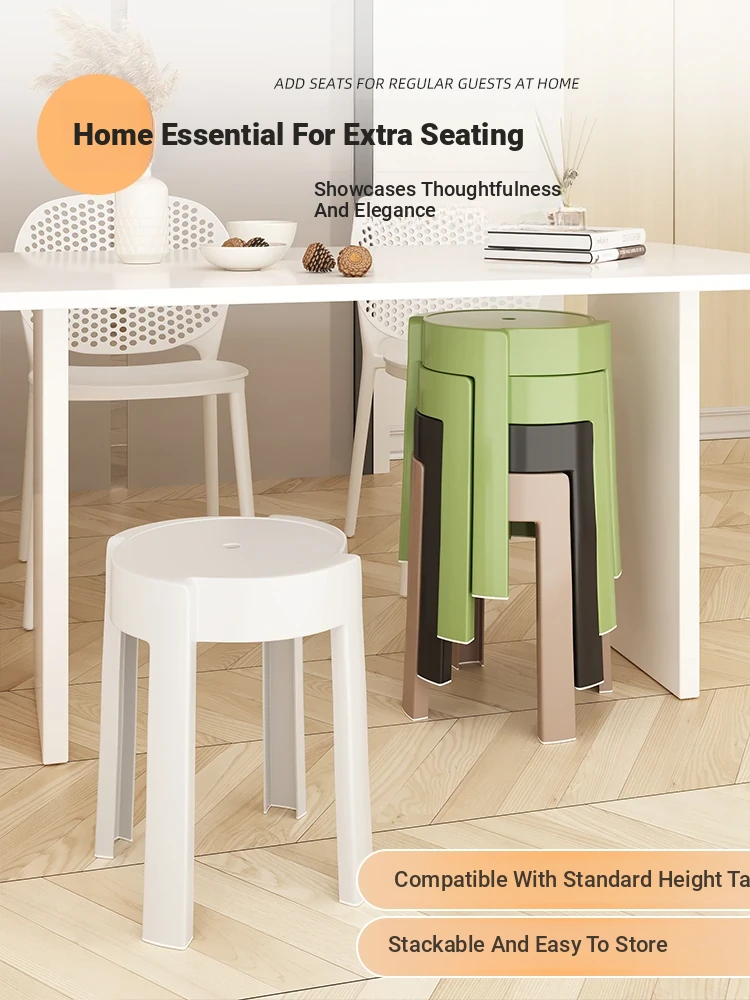 Thickened Stackable Plastic Stool for Home Use - Simple Round Dining Chair with Durable Rubber Top, Ideal High Stool for Versatile Spaces