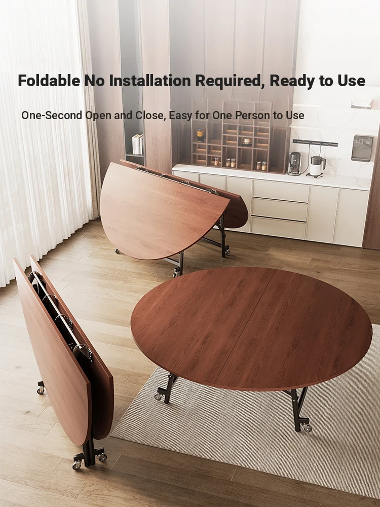 Foldable Dining Table for Home – Large Round Table for 10-20 People with Rotating Center – Innovative Double-Fold Design for Space Saving and Versatile Dining Experience