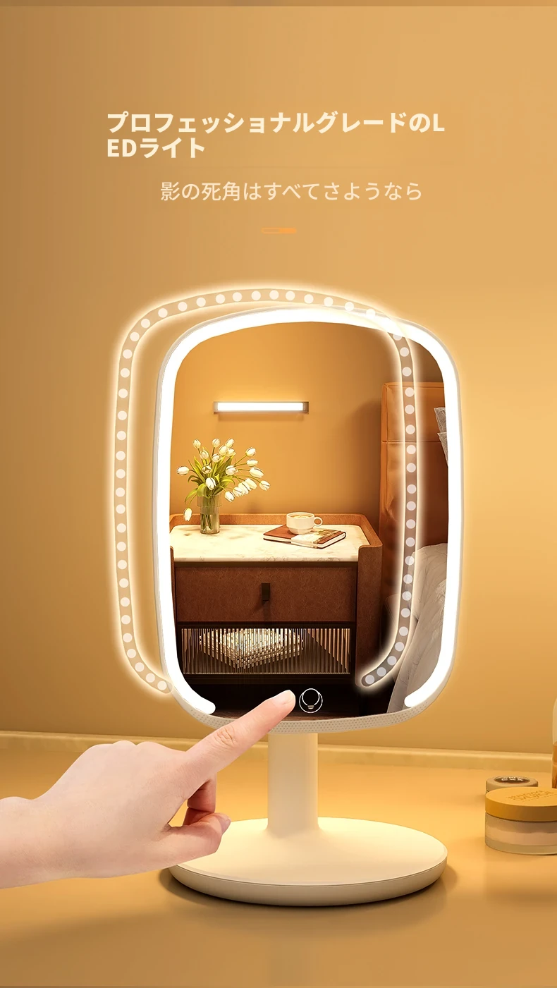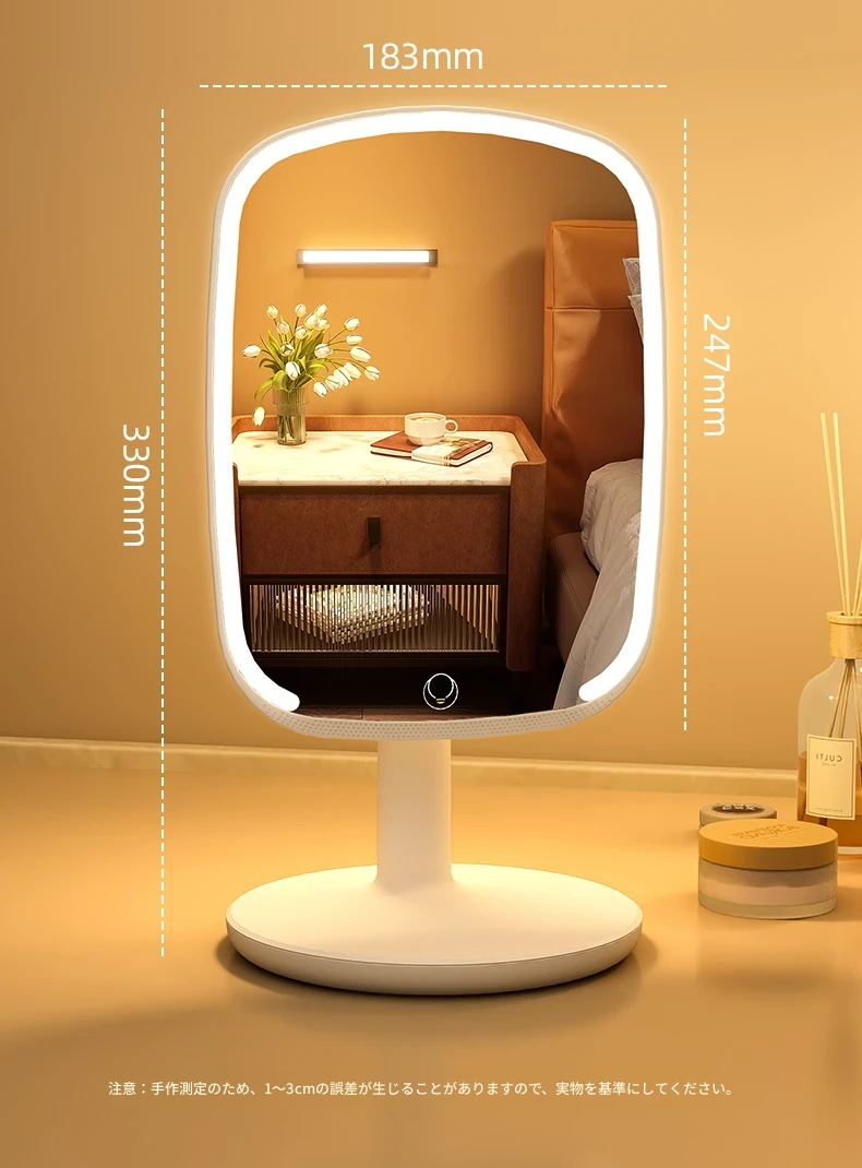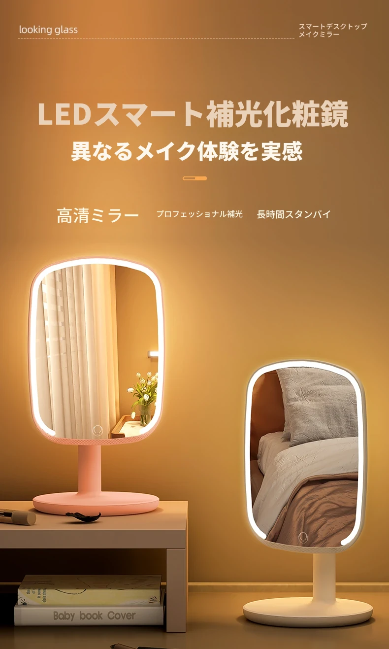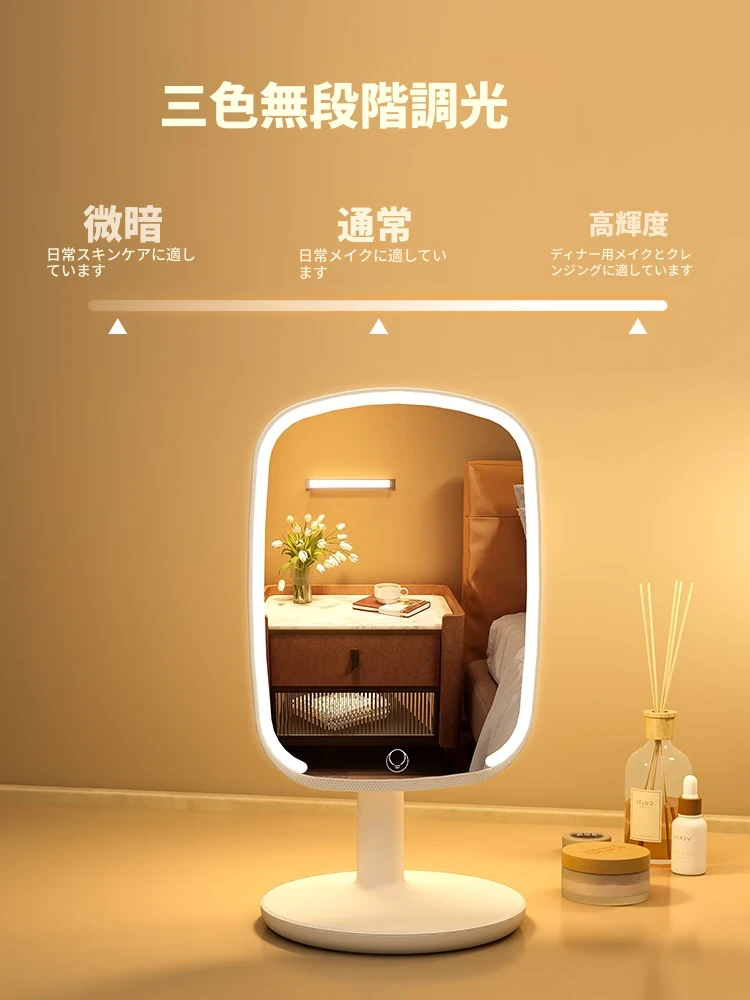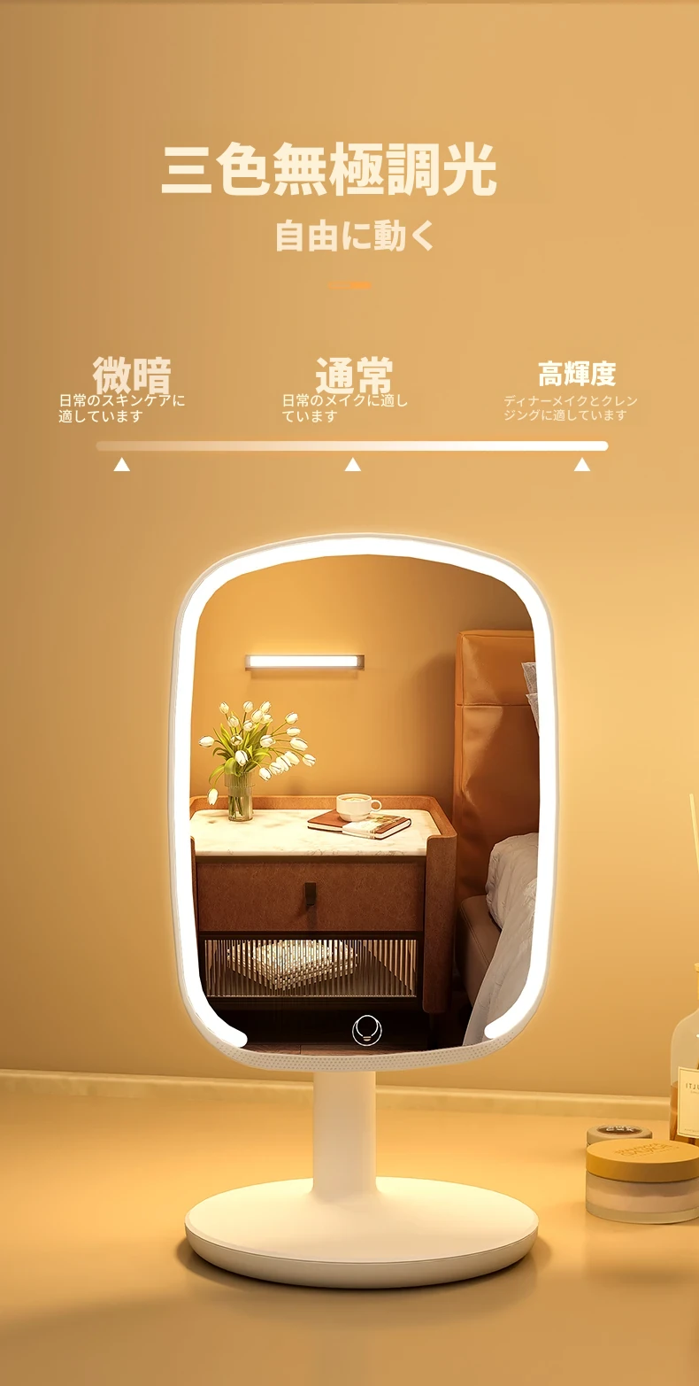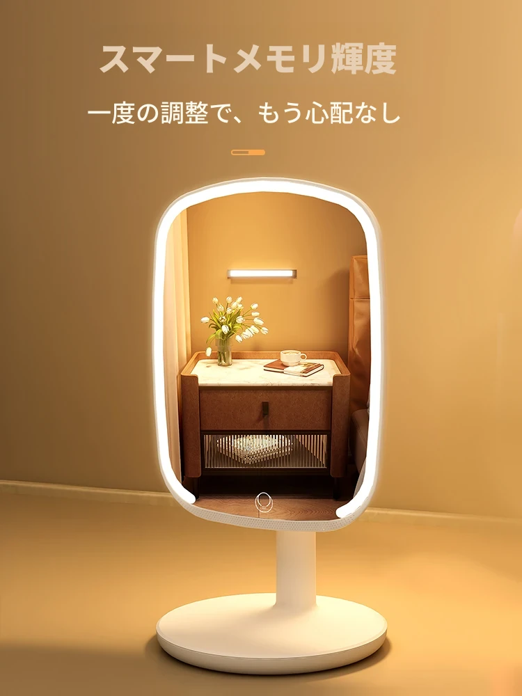 2025年新作!LEDライト付きメイクミラー - デスクトップ用、学生や家庭に最適なベッドサイド補光鏡で、美しく輝くメイクを実現!