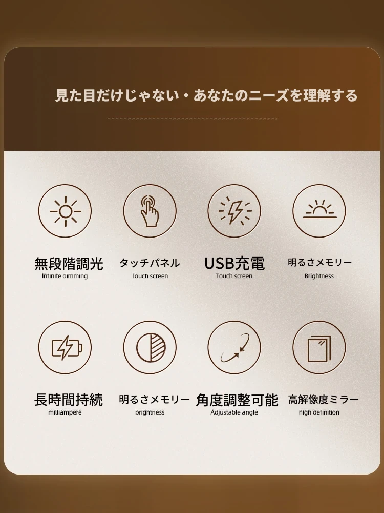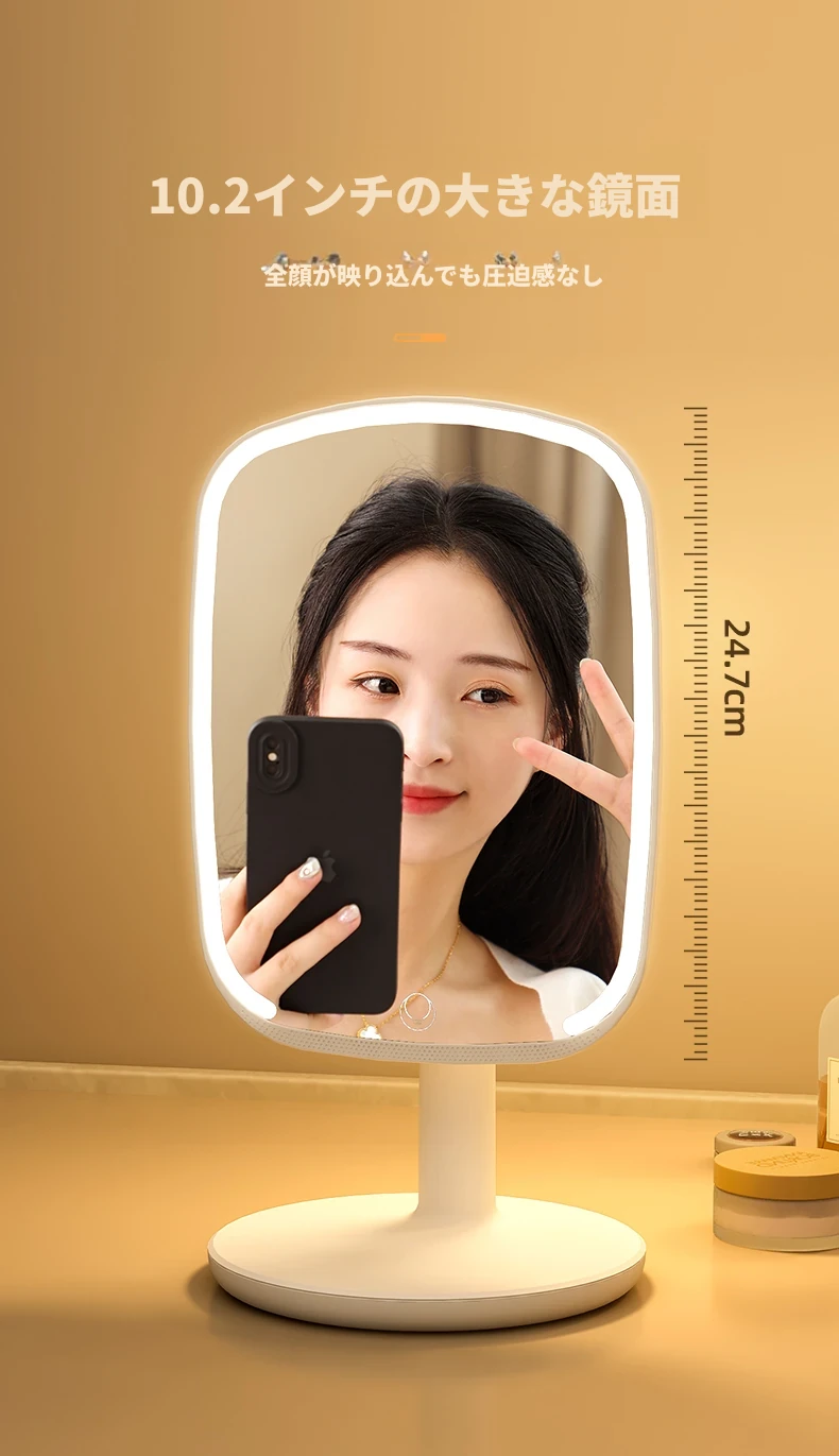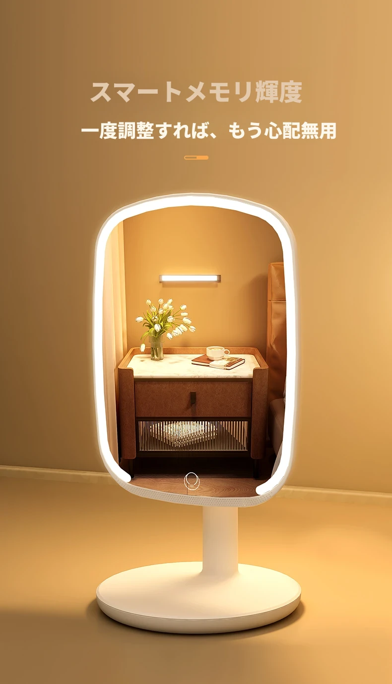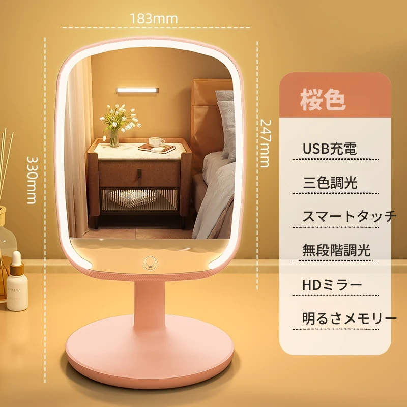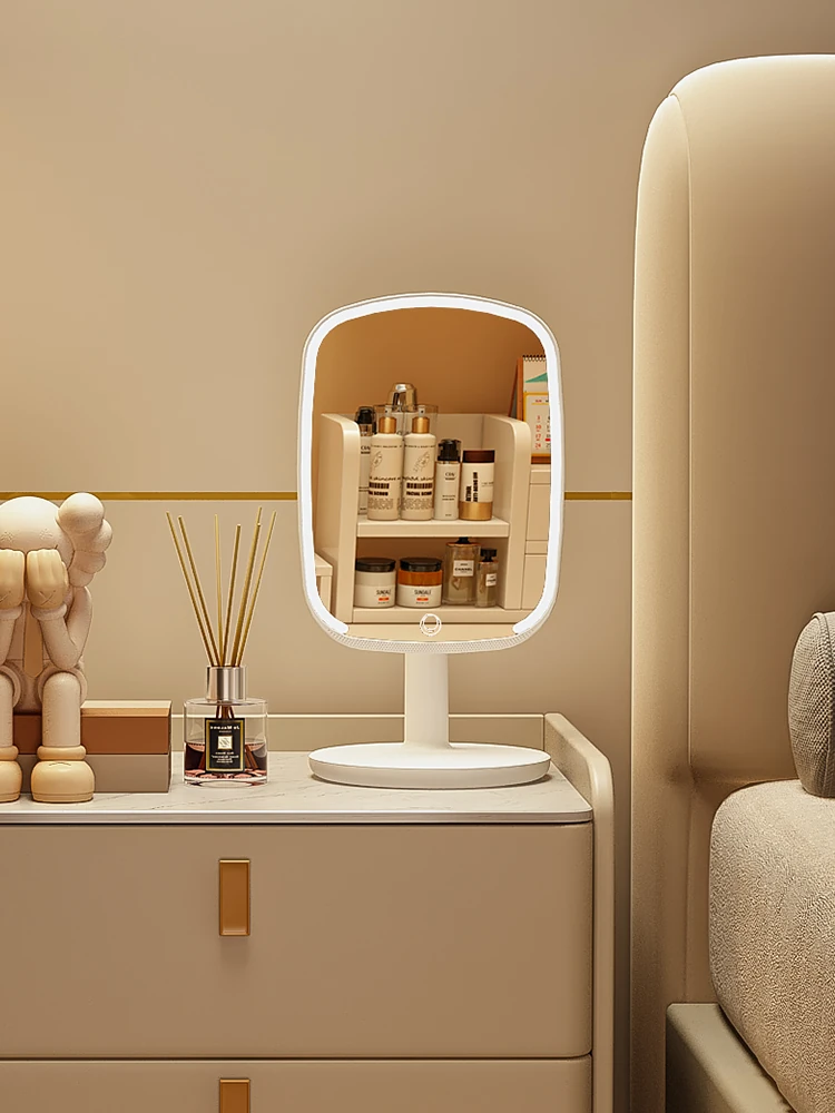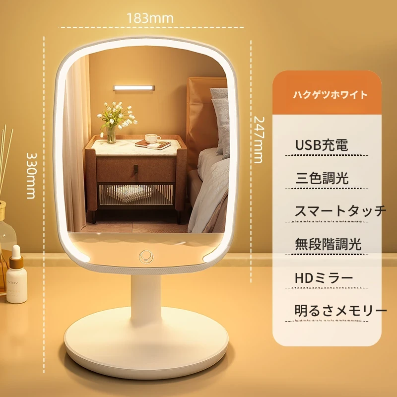2025年新作!LEDライト付きメイクミラー - デスクトップ用、学生や家庭に最適なベッドサイド補光鏡で、美しく輝くメイクを実現!