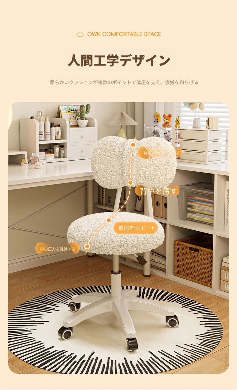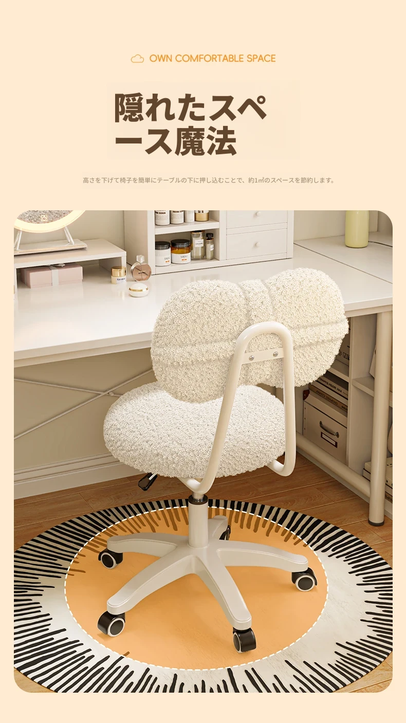 新作!化粧椅子・寝室用ドレッサー・背もたれ付き・デスクチェア・万能キャスター搭載・回転可能なネイルチェアで、快適な美容体験をお楽しみください!