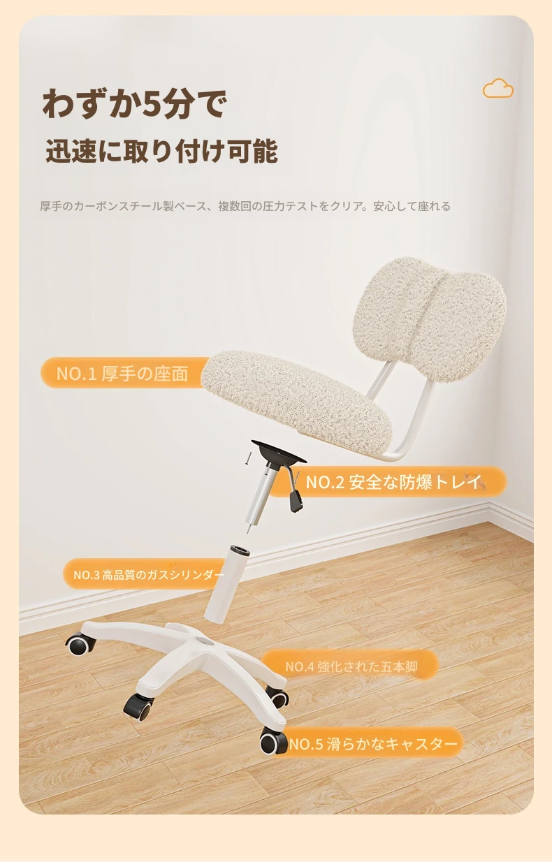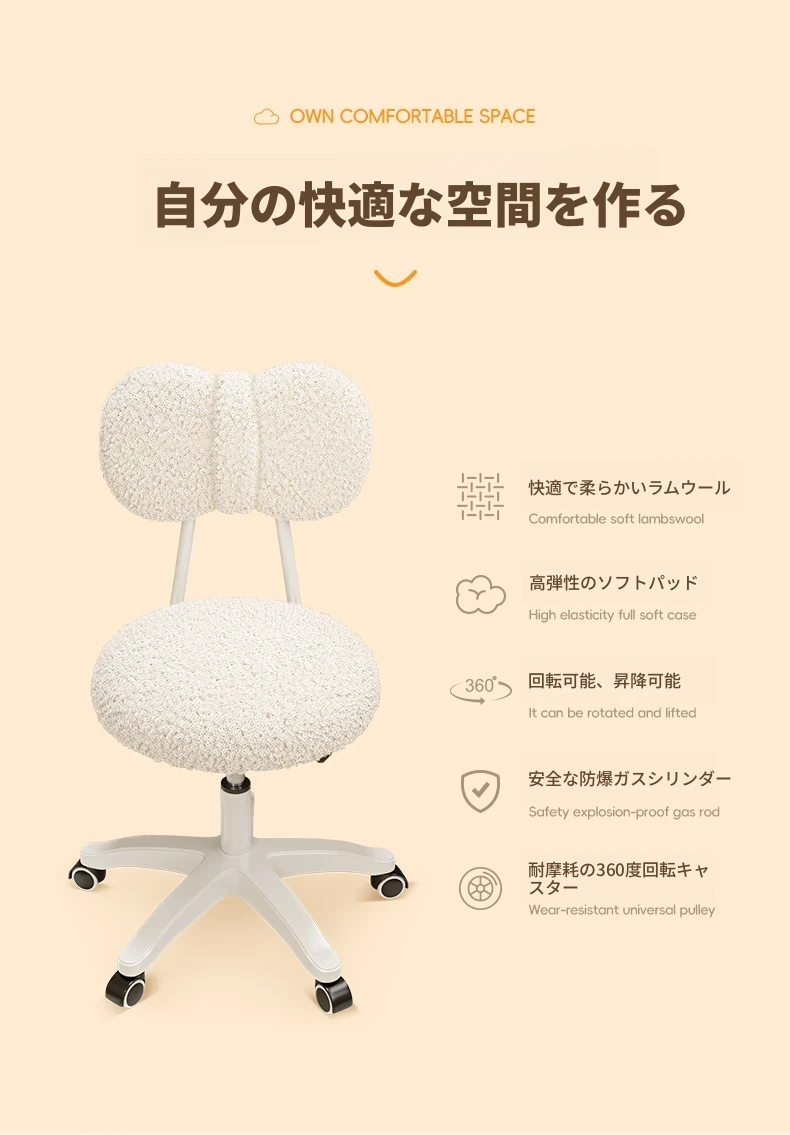 ホワイトラムウール【シルキーな360度回転ホイール+昇降調整】