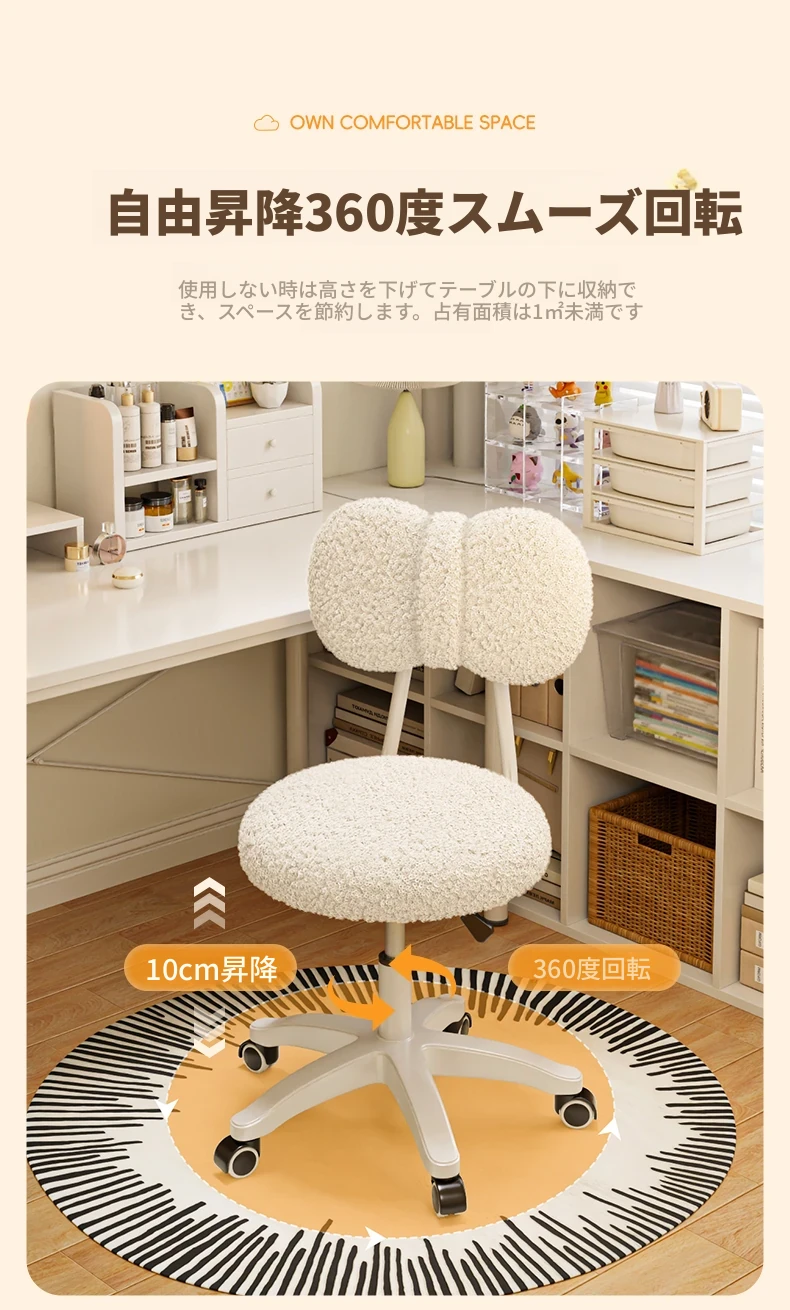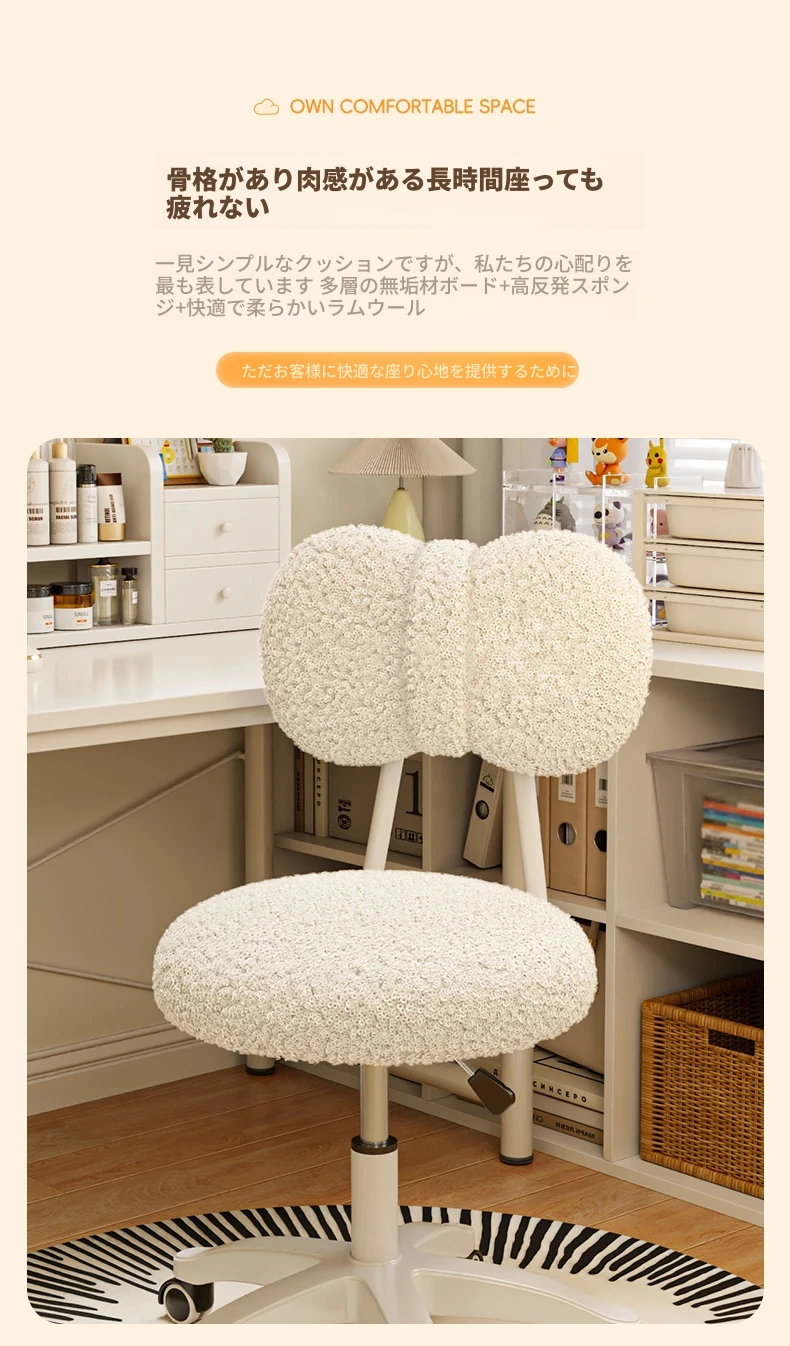 主画像の人気商品⭐ピンクのラムウール【シルキーな360度回転ホイール+昇降調整】