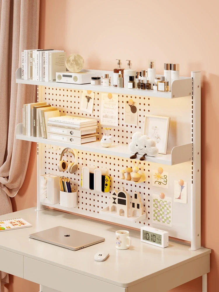 デスク用収納ラック - 学習机やオフィスデスクに最適!多層設計で、便利な穴あきボード付き。書籍や文具の整理整頓をサポートし、作業スペースをスッキリ!おしゃれで機能的なアイテムです。