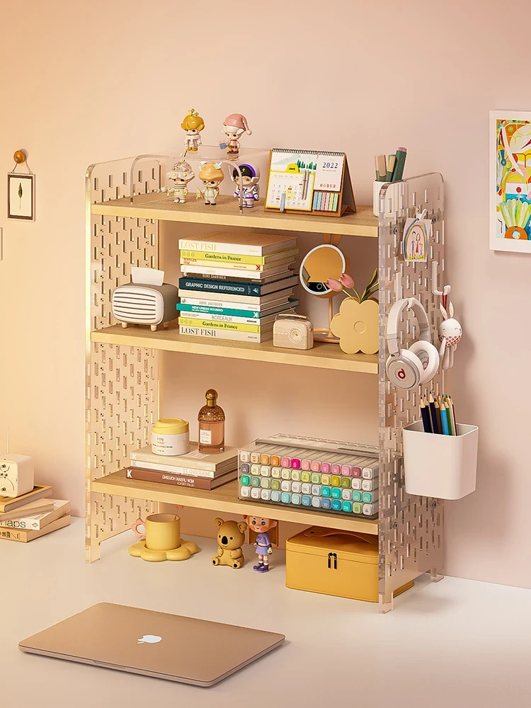 アクリルデスクオーガナイザー - 学生寮やオフィスに最適!パソコンデスク上のスペースを有効活用し、書類や文房具をスッキリ整理できる多層収納ラック。おしゃれで機能的なアイテムで、作業効率をアップさせましょう!