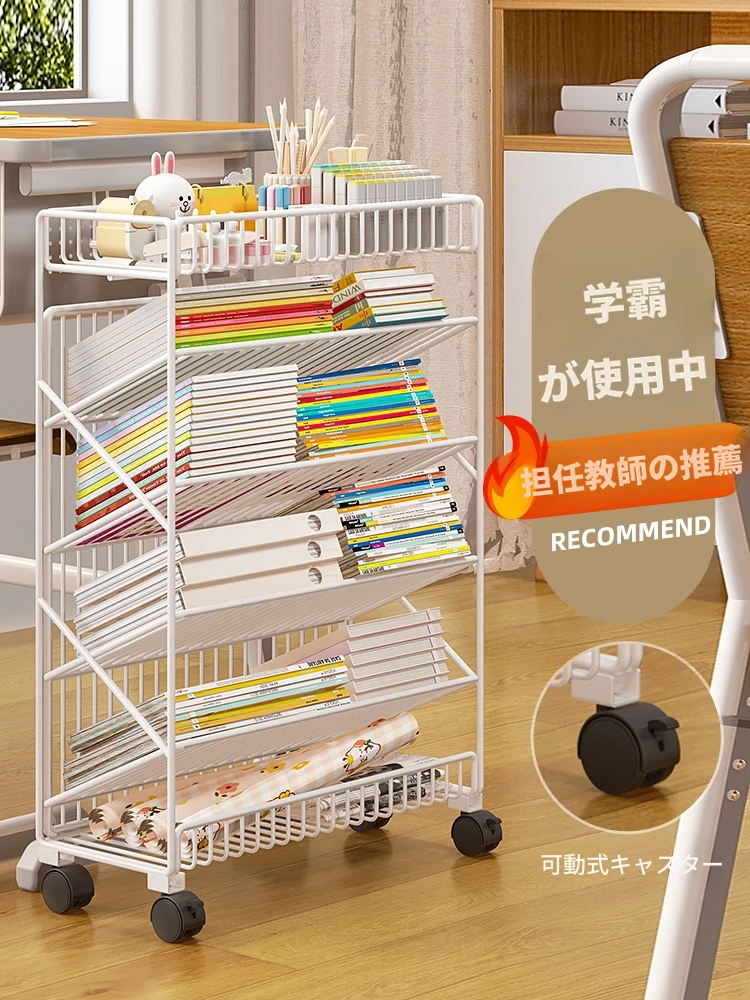 移動可能な子供用書籍ラック!おしゃれなアイアン製の簡易収納棚、壁にぴったりフィット。キャスター付きで掃除もらくらく、楽しく本を整理できます!