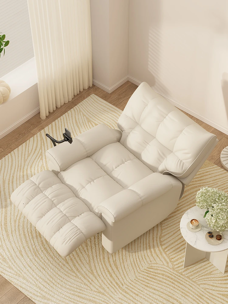 リラックスできる!寝転びながらくつろげる多機能電動回転レザーリクライニングソファ - 一人用、リビングやバルコニーに最適な快適な休憩椅子!