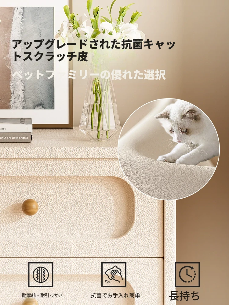 2025年注目のトレンド!実木製ベッドサイドキャビネット - おしゃれなクリーム風デザインで、コンパクトながら収納力抜群!お部屋をスッキリ整える理想のサイドテーブル。