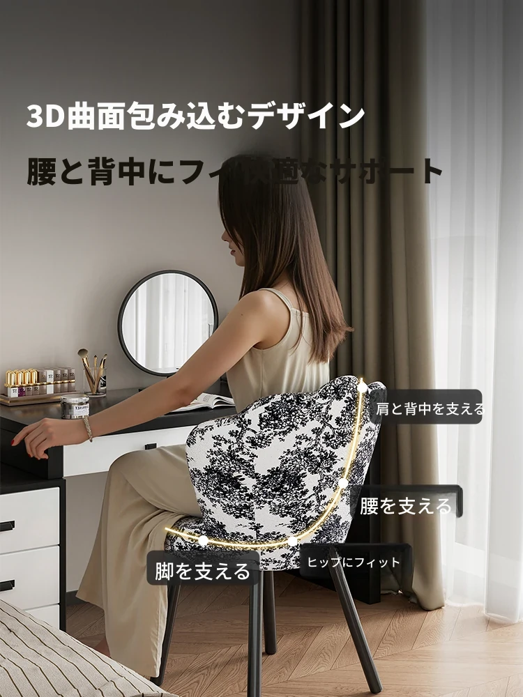 2024年新作!高級感あふれる家庭用メイクスツール - 女子のための美しい化粧台椅子、寝室にぴったりのネイルチェア!快適さとスタイルを兼ね備えたアイテムで、あなたのメイクアップタイムを特別なものに!