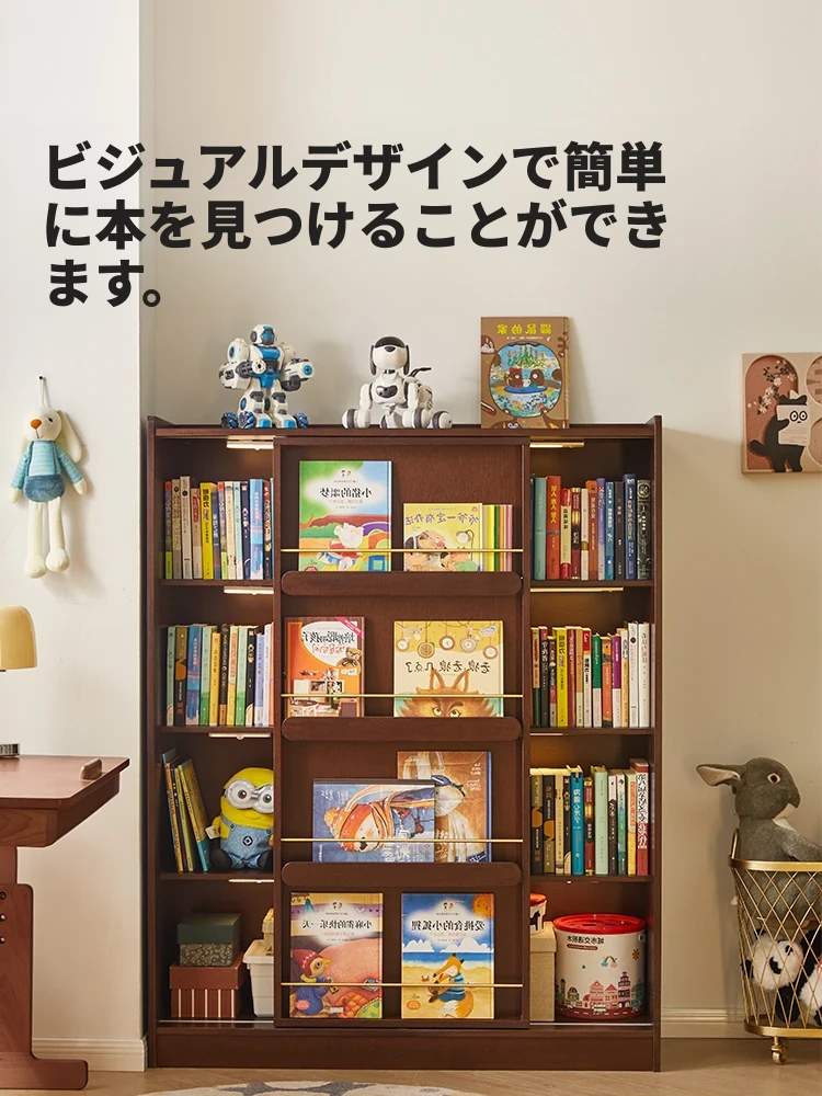 天然木製の子供向け絵本ラック | おしゃれなフロア収納棚 | 家庭の読書スペースや幼稚園に最適な書籍収納キャビネット | お子様の本をすっきり整理!