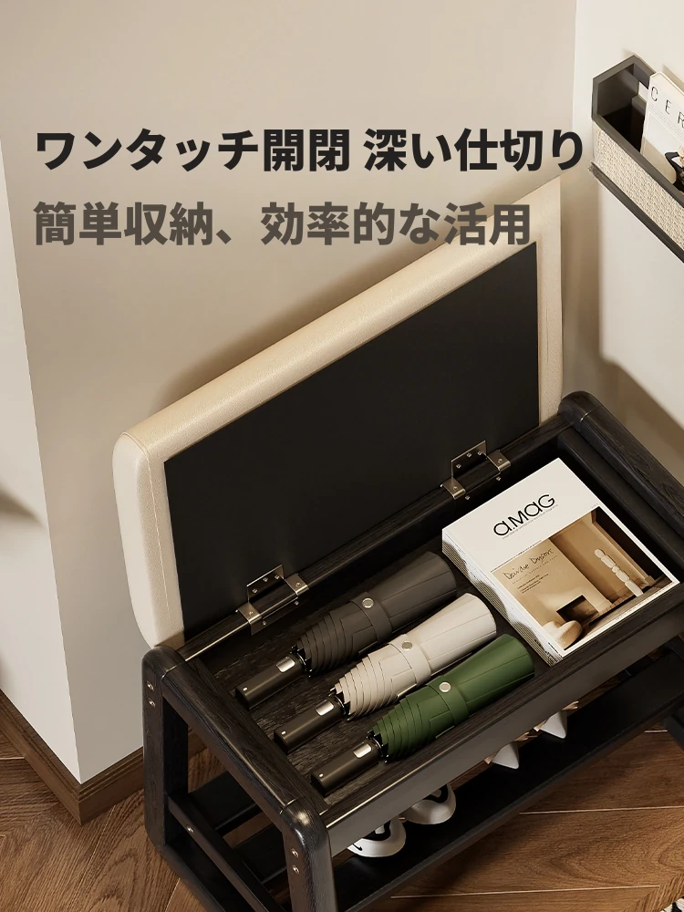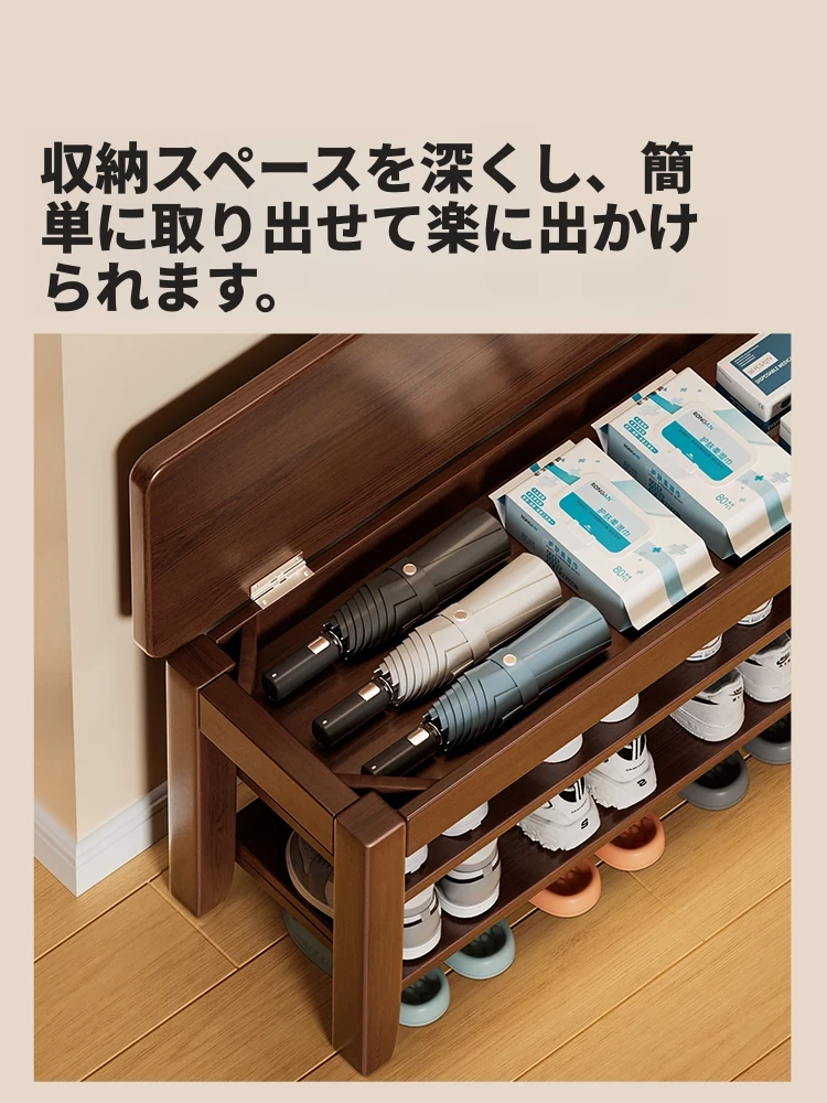 天然木製の靴収納ベンチ!玄関での靴脱ぎに最適、座って楽に靴を履ける!シンプルでスタイリッシュなデザイン、家の入口をおしゃれに演出します。収納スペースも充実、お客様を迎える準備はこれでバッチリ!