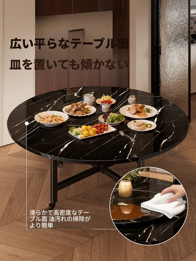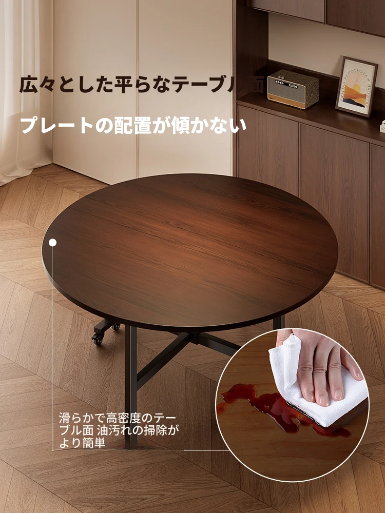 折りたたみ円形ダイニングテーブル - 家庭用、移動可能、12人・15人対応、新型大丸テーブルで楽しい食事を!収納も簡単でスペースを有効活用!