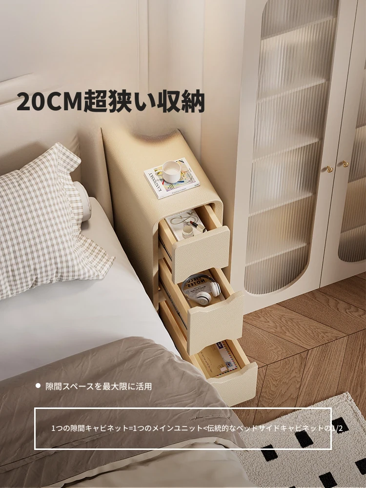 クリーム風ベッドサイドテーブル 超スリム 家庭用ミニ20cm幅 狭いスペースにぴったりの収納キャビネット 小型住宅に最適な隙間収納ラック