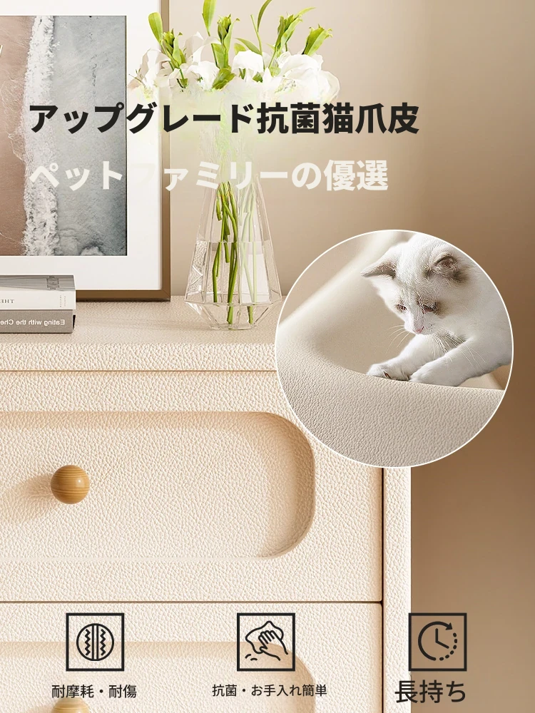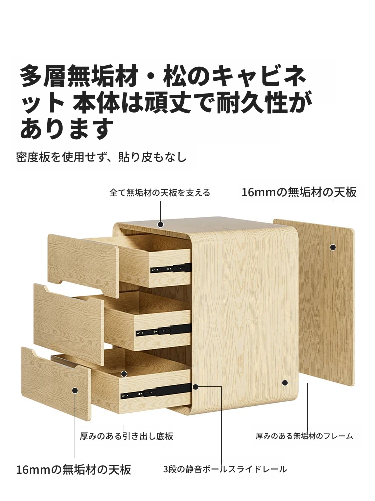 クリーム風デザインの天然木製ベッドサイドキャビネット - 2025年のヒット商品!高級感あふれるスタイリッシュな収納家具で、あなたの寝室を華やかに演出します。