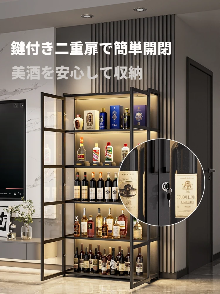 2025年新款ロック付きワインキャビネット - 高級感溢れるリビング向け壁掛け型酒収納ラック!贅沢な白酒と赤ワインのためのスタイリッシュな収納ソリューション。お洒落な空間を演出します!