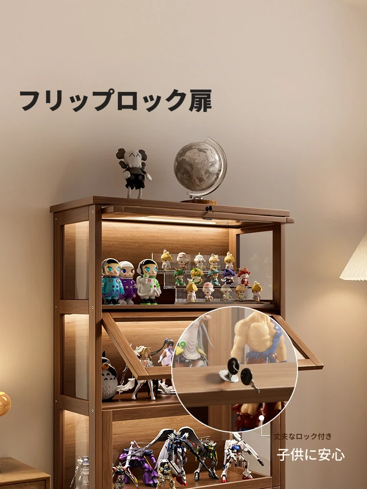 ロック付き天然木製フィギュアディスプレイキャビネット - 透明アクリル多層式、ホコリから守る、魅力的なコレクション収納!おもちゃや模型を美しく展示できる収納家具です。