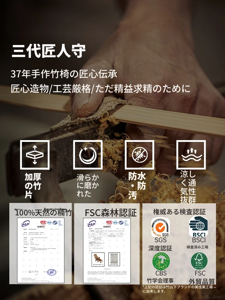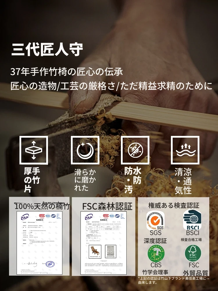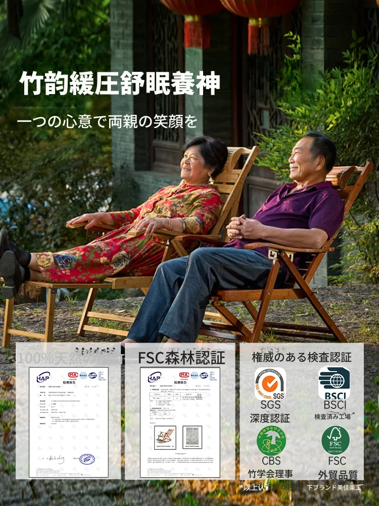 折りたたみ式リクライニングチェア - 耐荷重500キロの頑丈なタイプ!家庭用にも最適で、しっかりした背もたれで大人も快適に寝られる竹製クールチェア。リラックスしたいあなたにぴったりの一品!