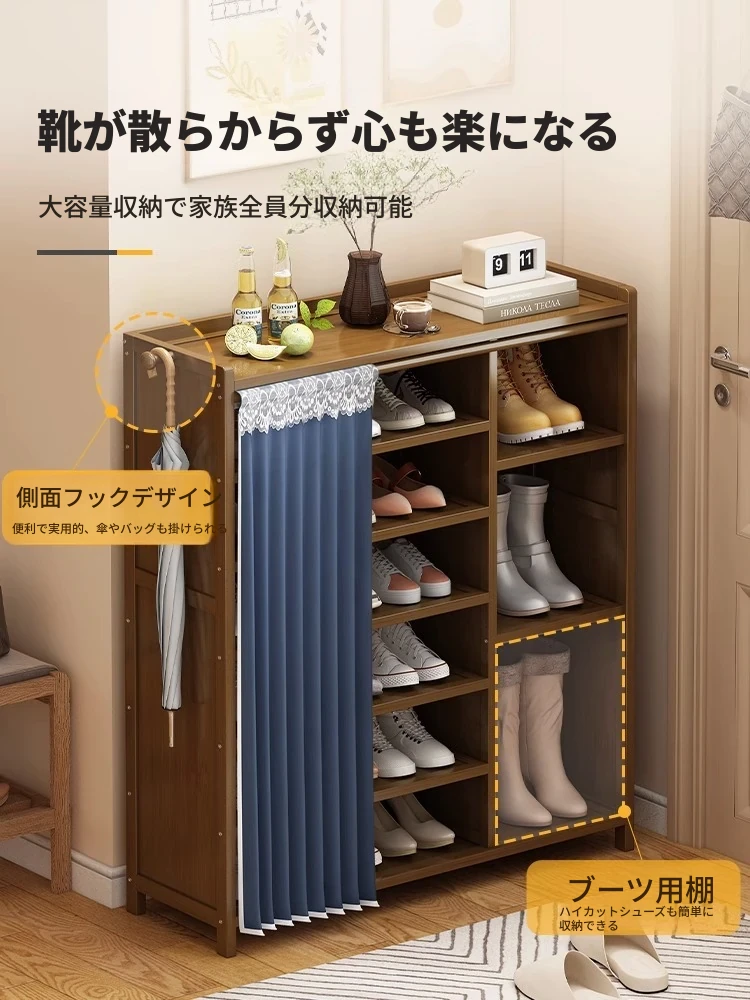 多層シューラック - 家庭用玄関収納、ホコリ防止!実木製の靴収納ベンチ一体型、スムーズな靴の履き替えをサポート。スタイリッシュで機能的なデザインで、あなたの玄関を美しく整理整頓!
