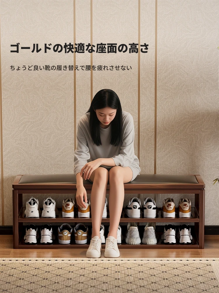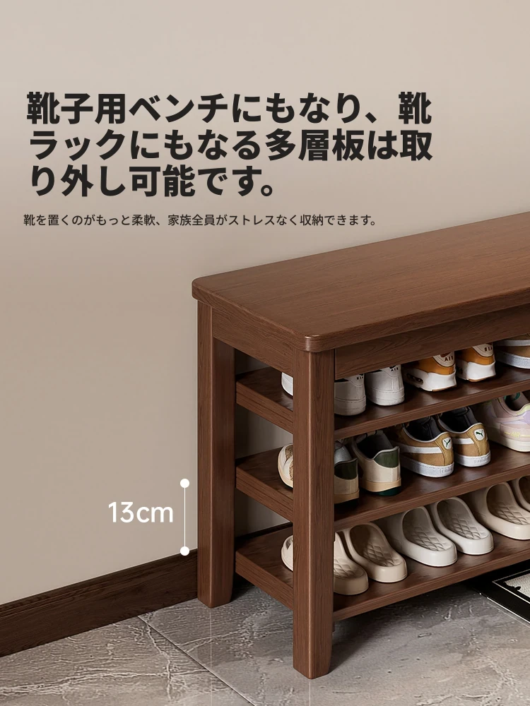 高級感溢れる無垢材の靴ベンチ|玄関用・靴を履く際に最適な一体型シューズキャビネット|軽やかでスタイリッシュなロングベンチ、あなたのエントランスを華やかに演出します!