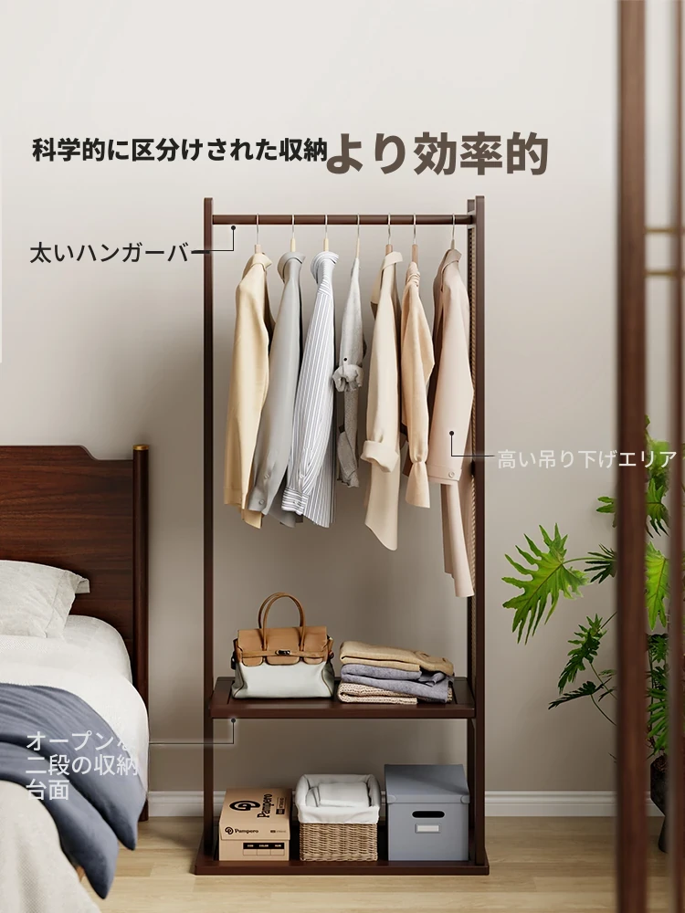 新作!シンプルでスタイリッシュな無垢材製の衣類ハンガー - ベッドサイドにもぴったり!角に置ける立て式デザインで、夜のお洋服をスマートに収納する便利アイテム!