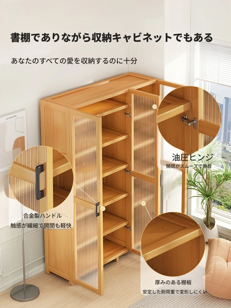 おしゃれな天然木製の本棚、扉付きの防塵アクリルドアで安心収納!壁掛け式でスペースを有効活用、家族みんなが使える便利な収納ラックです。