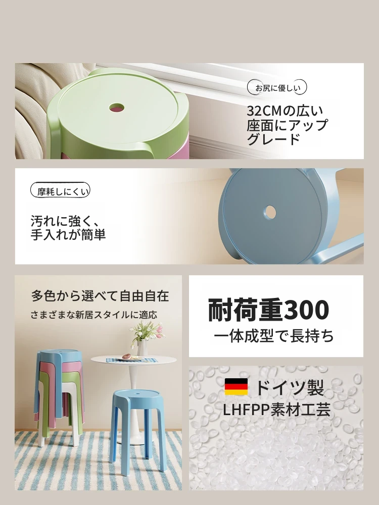ドーパミンカラースタッキングプラスチック丸椅子 - 厚手で家庭用、マカロンカラーのリビングゲスト用予備椅子!おしゃれで便利なデザインで、どんなインテリアにもぴったり!