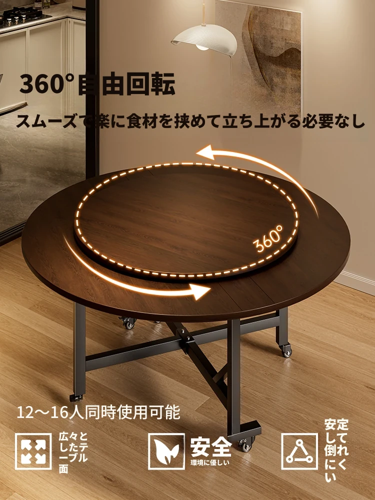 折りたたみ式の円形ダイニングテーブル - 小スペースに最適、最大12人まで対応可能!新しいデザインで移動も簡単、家族や友人との楽しい食事の時間を演出します!