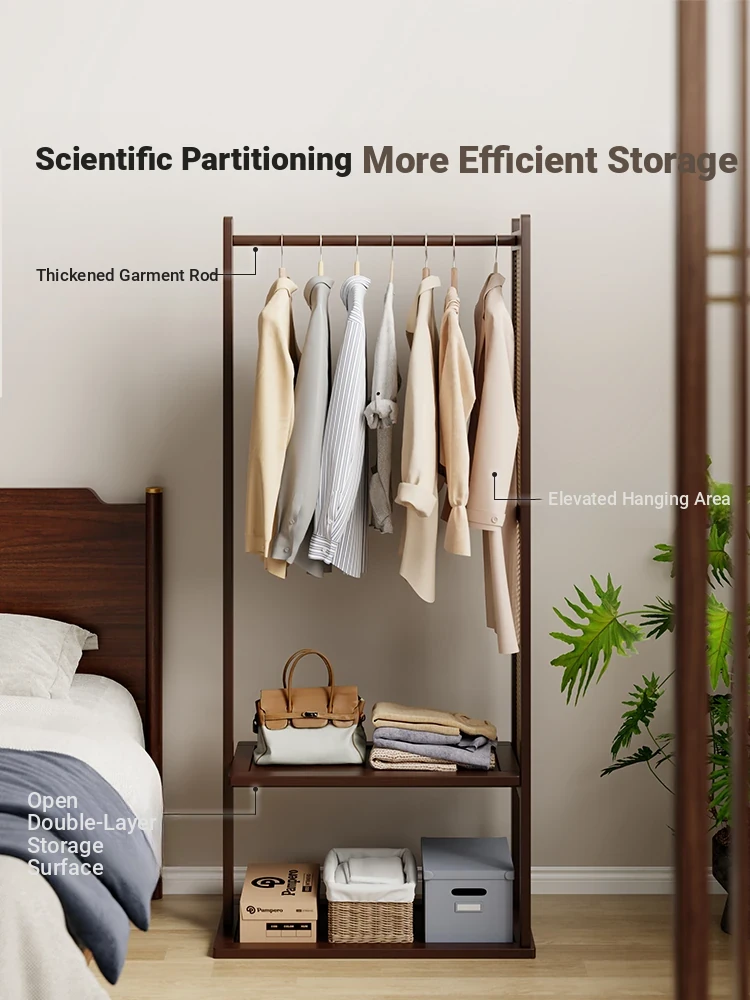 新作!シンプルでスタイリッシュな無垢材製の衣類ハンガー - ベッドサイドにもぴったり!角に置ける立て式デザインで、夜のお洋服をスマートに収納する便利アイテム!